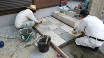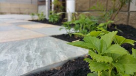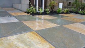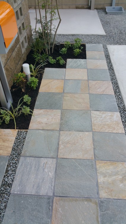 アプローチは自然石のスクエアストーン