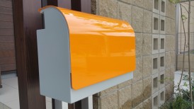 オレンジ色の独立ポスト
