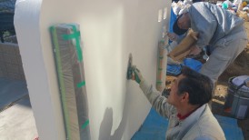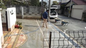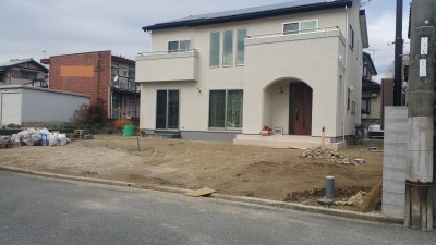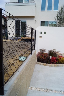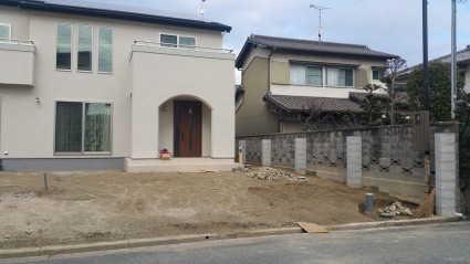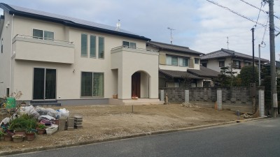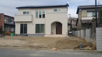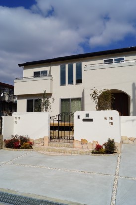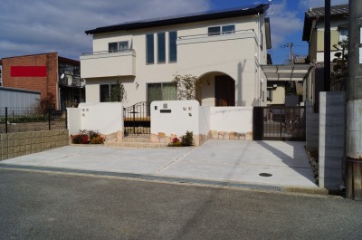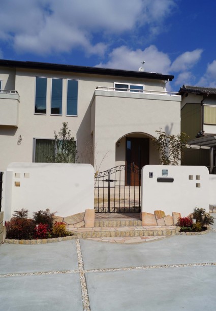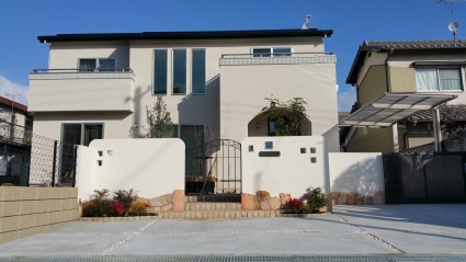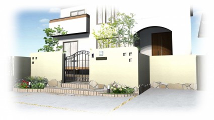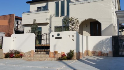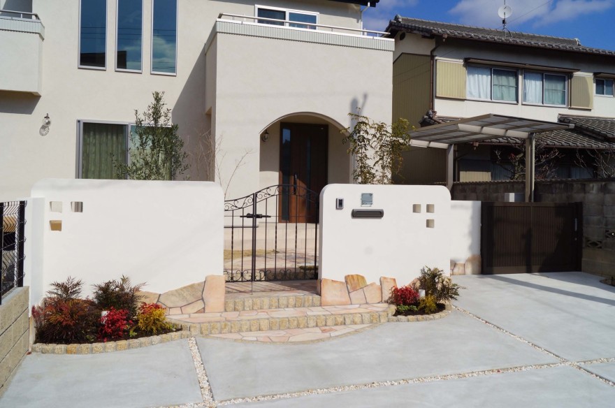 白色の塗り壁門柱が清潔感ある門廻りとなりました。