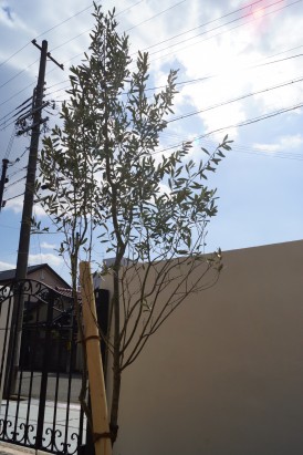 玄関ドアの正面にはシンボルツリーで視線をカットしています。