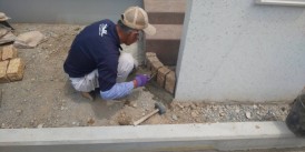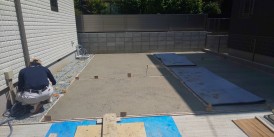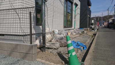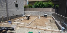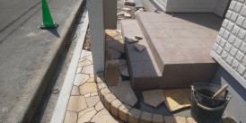 道路と玄関ポーチの高低差があるので階段(ステップ)を一段追加します。