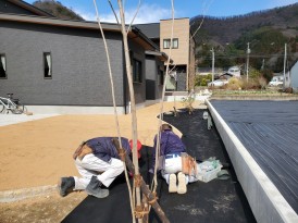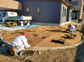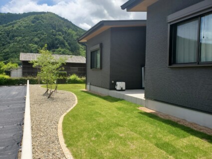 砂利部分に芝生の侵入を防ぐ役割もあります。