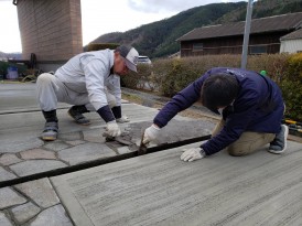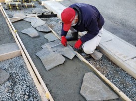 落ち着いた重厚さが感じられる鉄平石の石貼りで