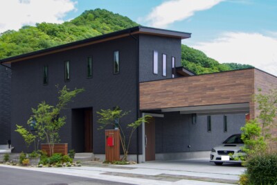 宍粟市山崎町外構|ウッド調のアクセントボードのお家に似合う和モダン外構・芝生のお庭