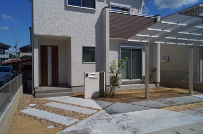 HOMEビフォーアフター新築外構 > ダークラインがアクセントな外構
