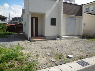 駐車場は軽自動車と普通車の2台でアプローチを確保するためと、芝生広場を確保するために軽自動車は