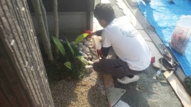 芝生の雑草でお困りだったお庭を自然石貼りにガーデンリフォーム 姫路市