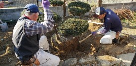 新しく生まれ変わったお庭ではキャラの木がお庭の