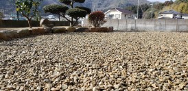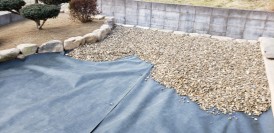 劇的に生まれかわったお庭は、防草シートと川砂利で