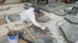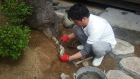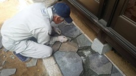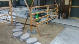 芝生の雑草でお困りだったお庭を自然石貼りにガーデンリフォーム 姫路市