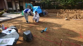 建物外周に川砂利敷のお庭リフォーム工事 姫路