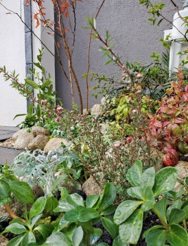 ゴロタ石が小さな空間の花壇ですがアクセントになり