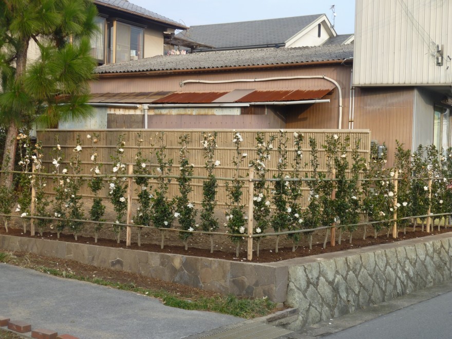 タカショーエバーバンプー建仁寺垣とサザンカの生垣 福崎町 O様邸