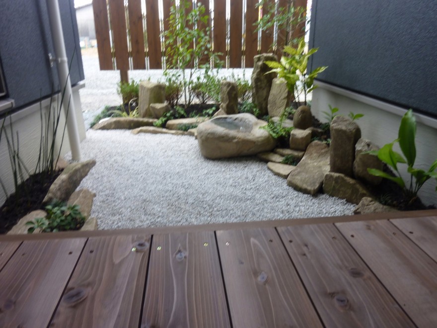 濡れ縁もあり水鉢も緑もあるイメージ通りの仕上がりです。
