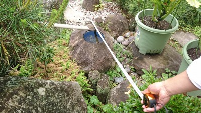 灯篭、水鉢、飛石を据え直して管理しやすい素敵なお庭に