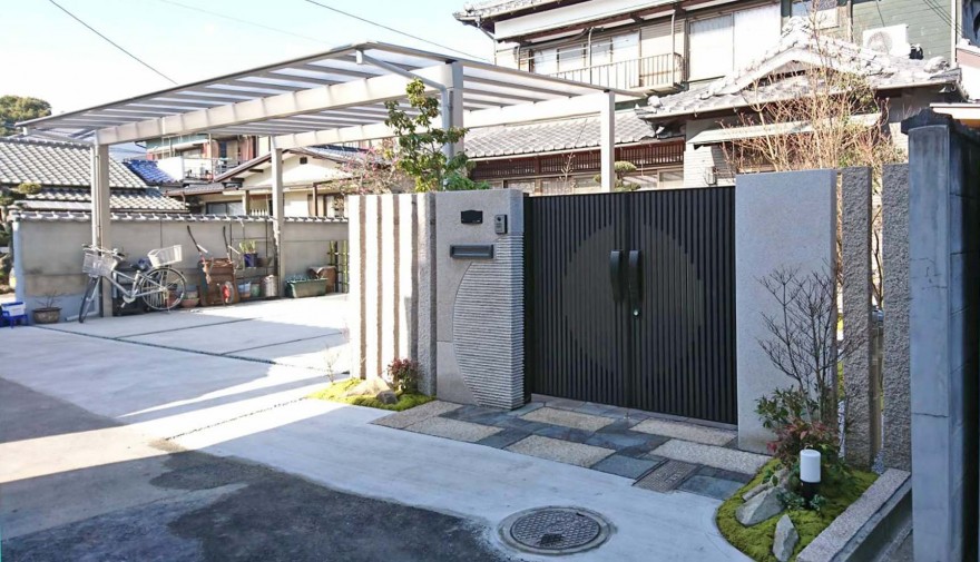 御影石でデザインされた重厚で落ち着きある門廻りは