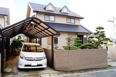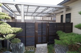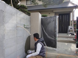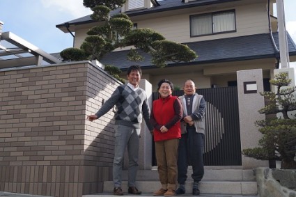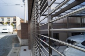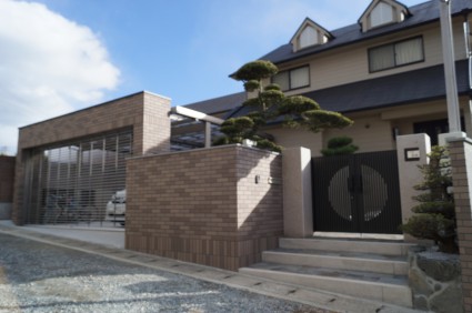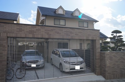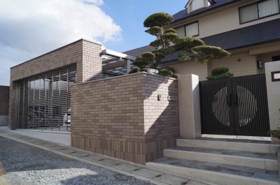 > 電動シャッターゲートとタイル張の門塀 姫路