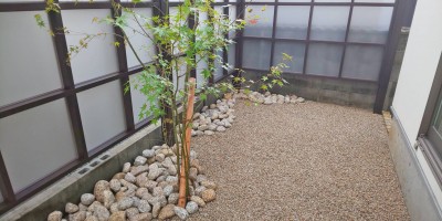 株立ちのイロハモミジの美しい枝ぶりの組み合わせで