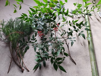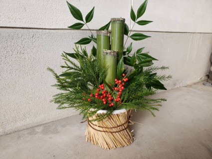 緑色の中に赤色が入ることで門松らしさが出ています。