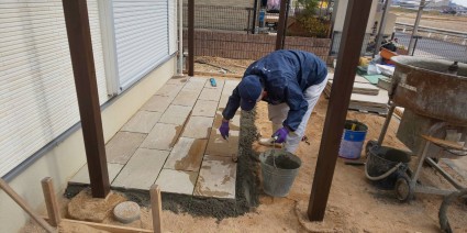HOMEスタッフブログ > たつの市ガーデン工事|砂岩石の石貼りテラス