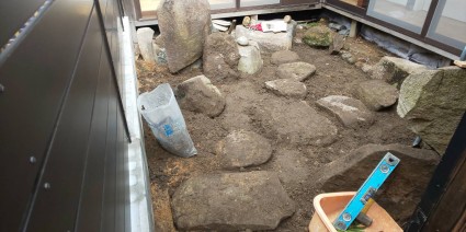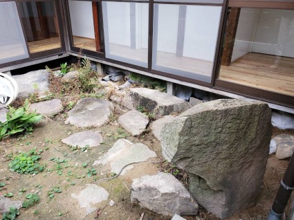 味わい深い庭石や飛び石が風情ある仕上がりに
