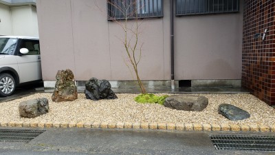 表庭でも庭石を据えてシンプルモダンガーデンに…