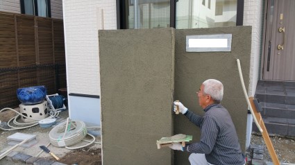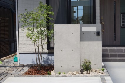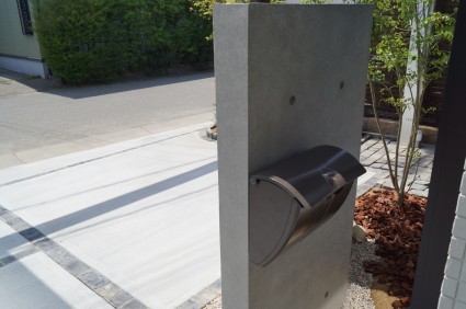 おしゃれな外構|打ちっぱなし門柱風塗り壁門柱