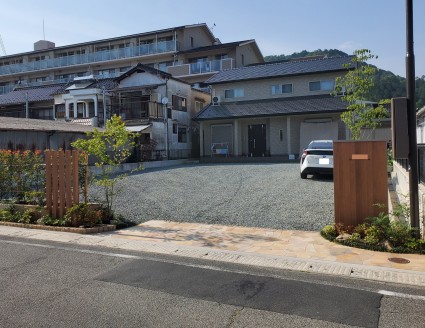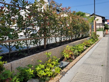 HOMEスタッフブログ > 木柄の門柱と植栽で爽やかな印象のナチュラル外構|宍粟市山崎町