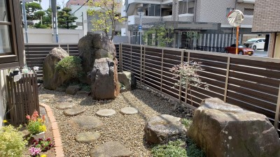 庭石を活かした石庭にガーデンリフォームです