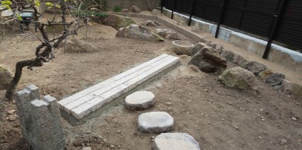 元々お庭にあった庭石や水鉢を再利用していきます。