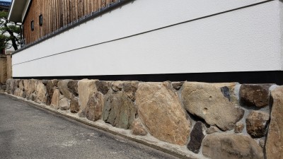 石垣と重厚感ある鎧塀で立派な門塀になりました。
