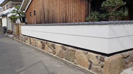 姫路市道路境界塀のリフォーム工事|生垣を和風塀にリフォームガーデン