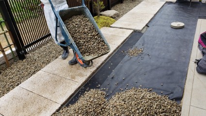 防草シートと砂利で草が生えにくい施し|ガーデンリフォーム工事