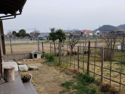 砂利敷きのお庭にアプローチが浮かび上がって見え