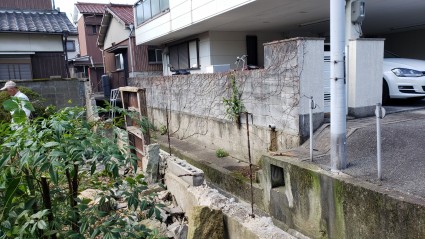 姫路市|50年前の外構の塀(大谷石)解体撤去