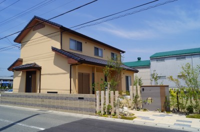 姫路市現代和風住宅の和モダン外構|芝生の庭