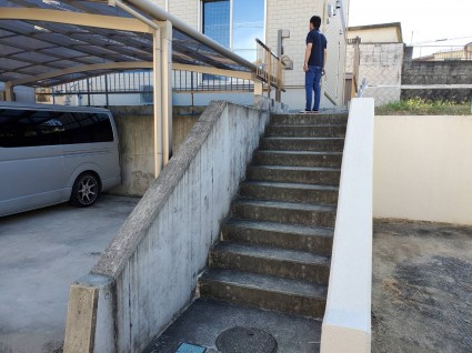 HOMEスタッフブログ > コンクリートの階段をタイル貼りに外構リフォーム工事|たつの市