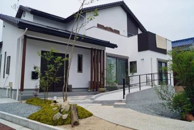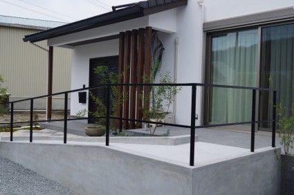 バリアフリーの外構|緩やかなスロープのエクステリアガーデンデザイン