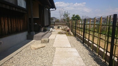 アプローチ脇のジャリは丸みを帯びたジャリなので