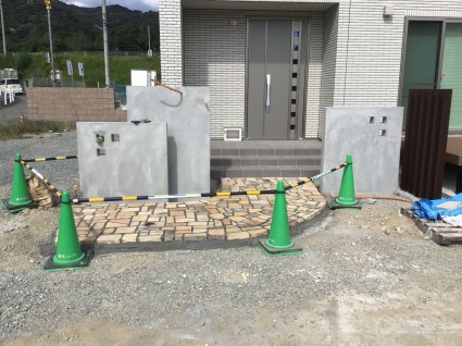 相生市外構|異形アンティークレンガ(中古レンガ)敷きアプローチ