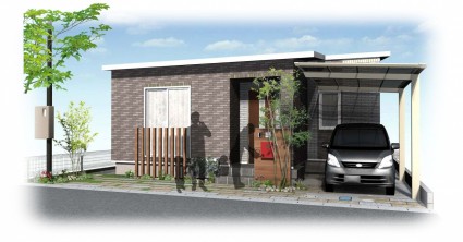 広めにとった駐車場は乗用車と自転車用のカーポート