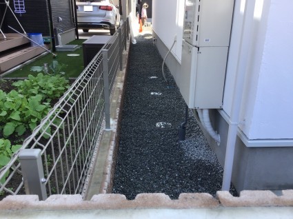 太子町新築外構|建物外周の雑草予防は砂利敷き