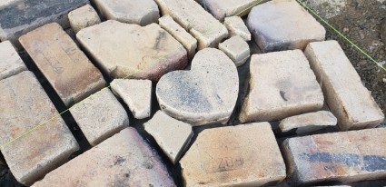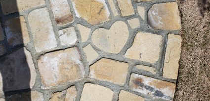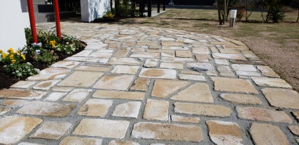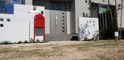 相生市外構|中古レンガのアプローチ・マリンライトの門柱