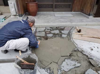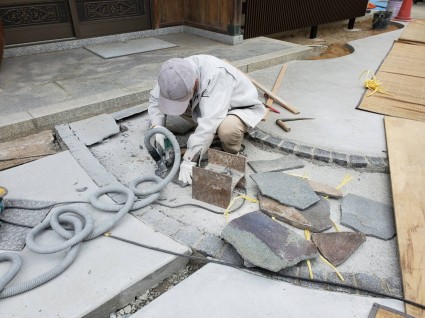 たつの市和風外構アプローチ工事|自然石の乱張りアプローチ