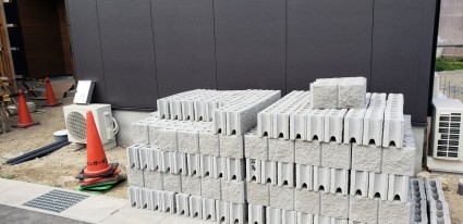 > 姫路市外構工事|隣地境界のブロック積み工事
