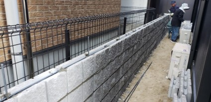 姫路市外構|隣地境界ブロック積み工事