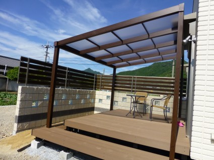 たつの市庭|ウッド調の独立テラス;三協アルミのナチュレ