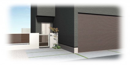 外壁に合わせて門廻りもダークカラーの