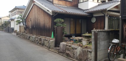 姫路市お庭のリフォーム工事|道路境界の石積みを基礎工事をして積み直し