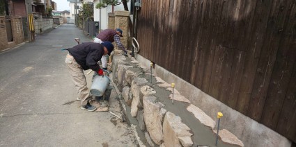 姫路市外構リフォーム工事|石積み基礎やり替え工事